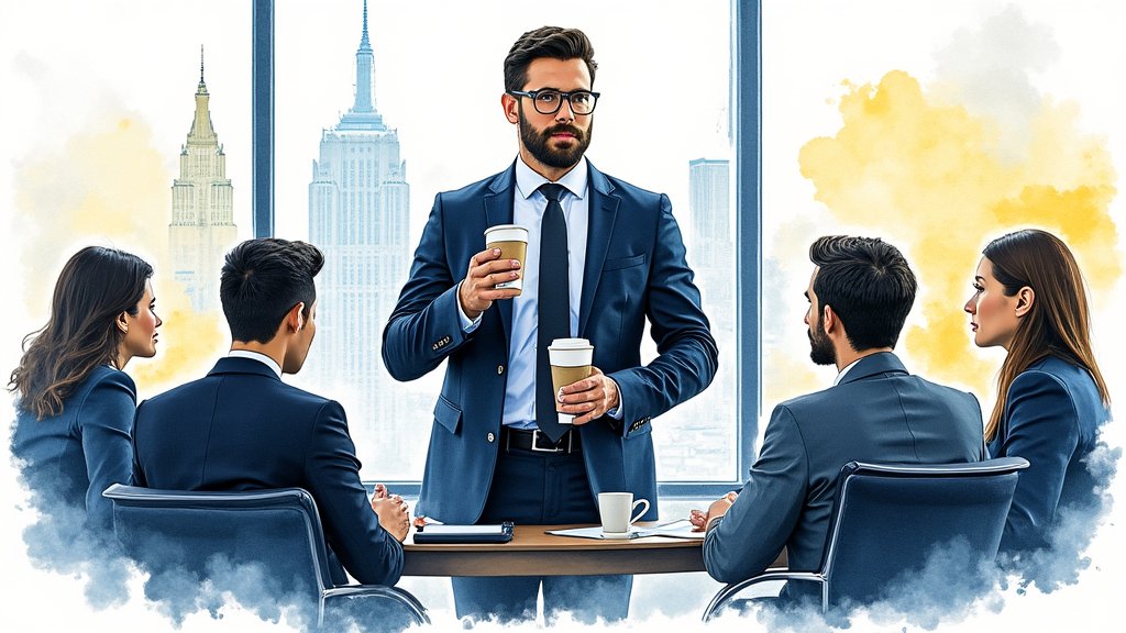 - Szef spieszący się na spotkanie – presja czasu lub niezrealizowane terminy.